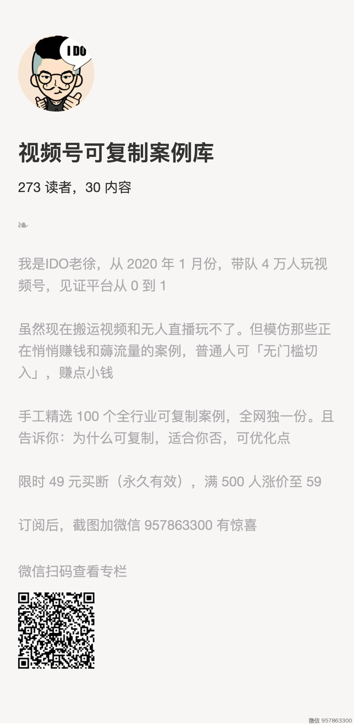 需要订阅「视频号可复制案例库」的,扫码订阅 。