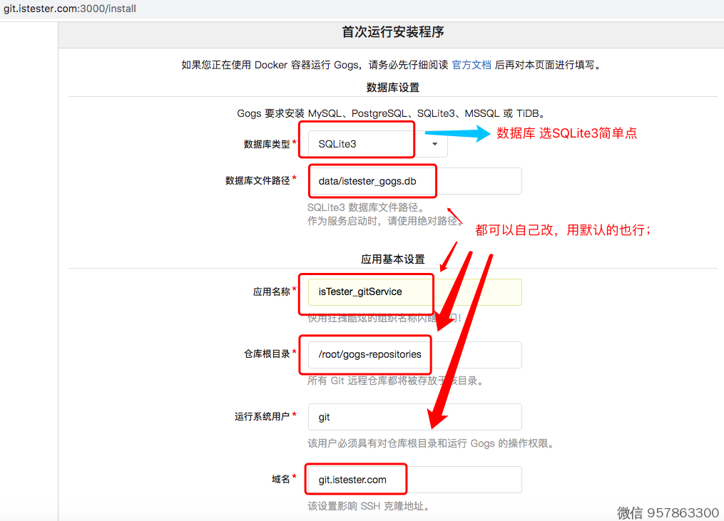 Git服务之 gogs安装页面配置