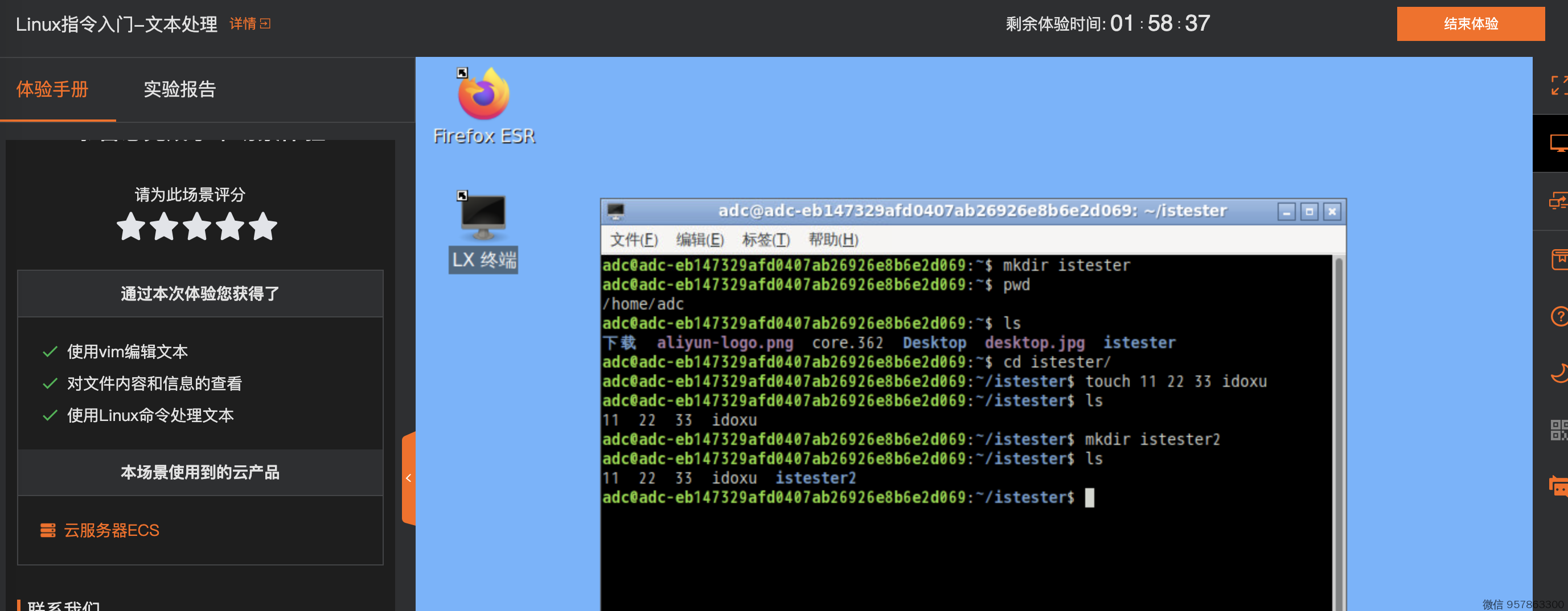 阿里云提供了 两个小时的免费(其实可以一直用,2小时结束后,可重新创建) 云机器,可以在线体验 Linux命令